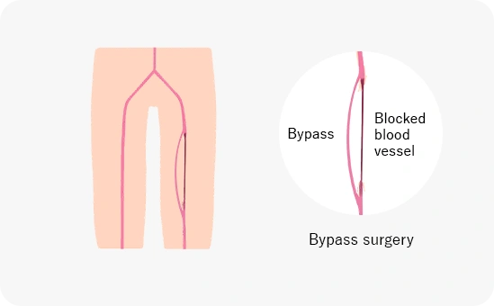 Bypass surgery involves creating a bypass with the patient’s leg veins or an artificial blood vessel; this bypass vessel goes around the blocked area to restore blood flow.