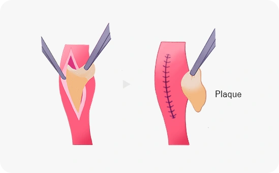 Thromboendarterectomy is a method of surgically removing the narrowed area and suturing the blood vessel back together. This widens the lumen, improving blood flow. This procedure is mainly carried out for a narrowed area at the base of the legs, near the groin.